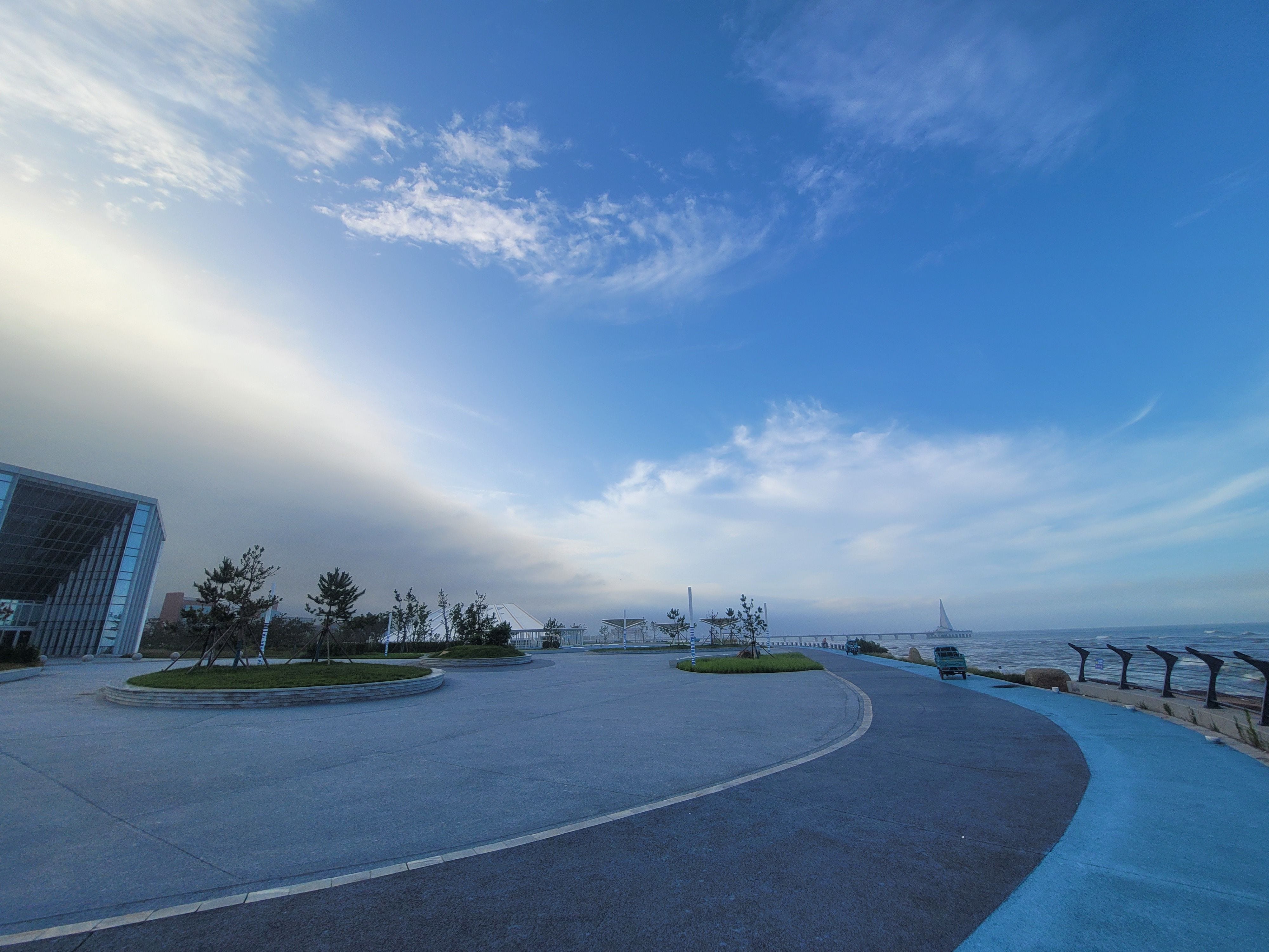 Very thick cloud that block the sun completely, yet the other half of the sky is clear blue sky with beautiful clouds.